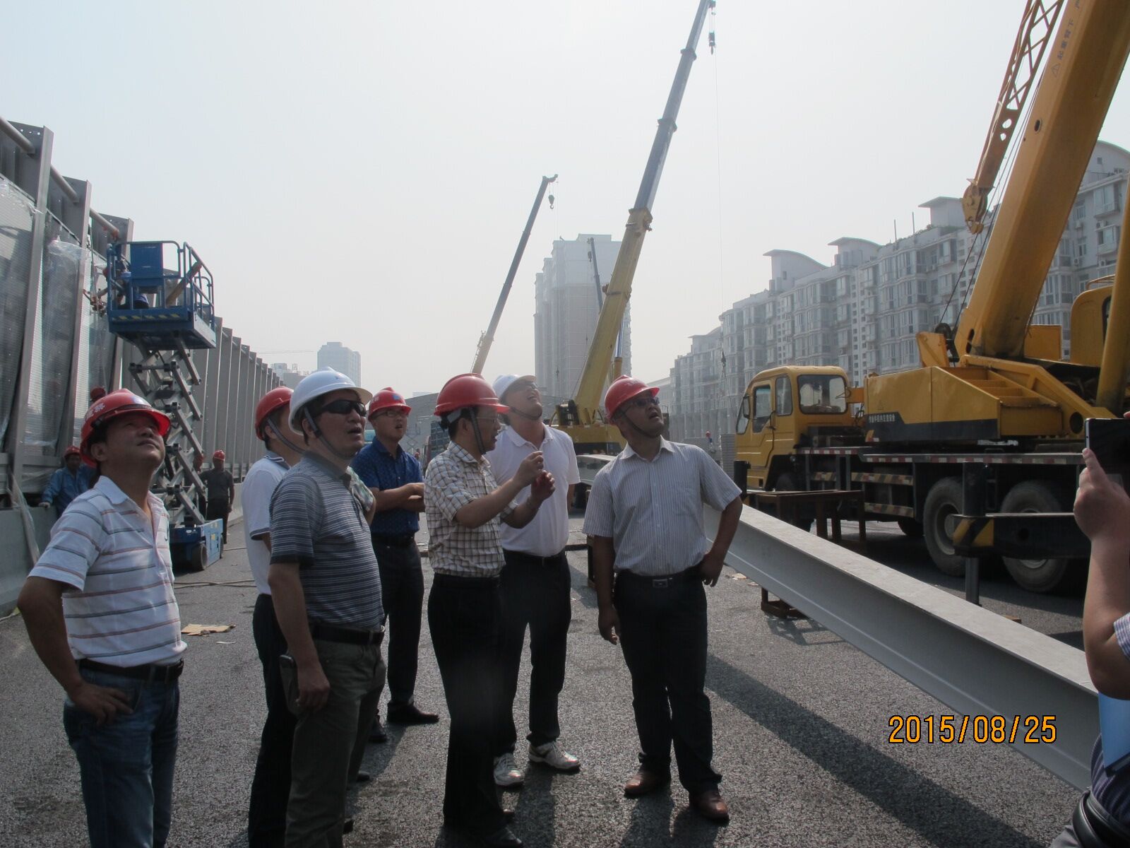 2015年8月25日上午,市城投集团公司工会主席江强生一行来到我公司负责代建的雄楚大街、龙阳大道工程现场检查安全生产工作。