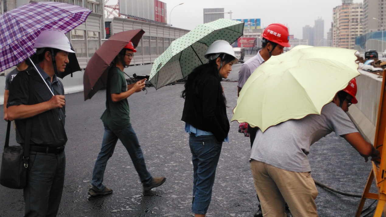 随后,检查组一行又冒雨检查了施工现场的高空作业、吊装作业、氧割氧焊作业、临时施工用电及乙炔及氧气瓶的放置等,并抽查了部分特种作业车辆及人员的相关证件。