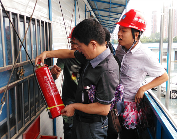 徐庆华部长在龙阳大道项目部对办公区消防器材进行检查