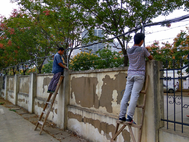 2、德利园区围墙护栏低矮很容易翻过,为防盗窃、防破坏,我司将围墙立柱加高80cm,并用带刺铁丝网围合,使不法分子无法翻过,确保园区安全。