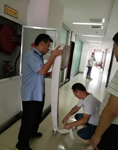 为进一步做好安全生产消防演练工作,提高安全生产应急管理水平和应急救援能力。8月11日下午3点,桥建集团在桥建大厦组织了消防应急演练。此次演练的有桥建集团全体人员和桥建大厦物业全体人员,发生火警后,该人员立即报告保安值班室和安保部。抢险灭火组对初期火灾进行扑灭,物业人员立即按响逃生警报,总指挥程金华命令抢险组组长、疏散组组长、救护组组长立即开始行动,安保部拨打119求助外援。疏散组引导人员向安全区疏散,先从着火部位开始,由内到外,由上到下逐步疏散,带领撤离人员利用毛巾、口罩等捂住口鼻快速撤离。