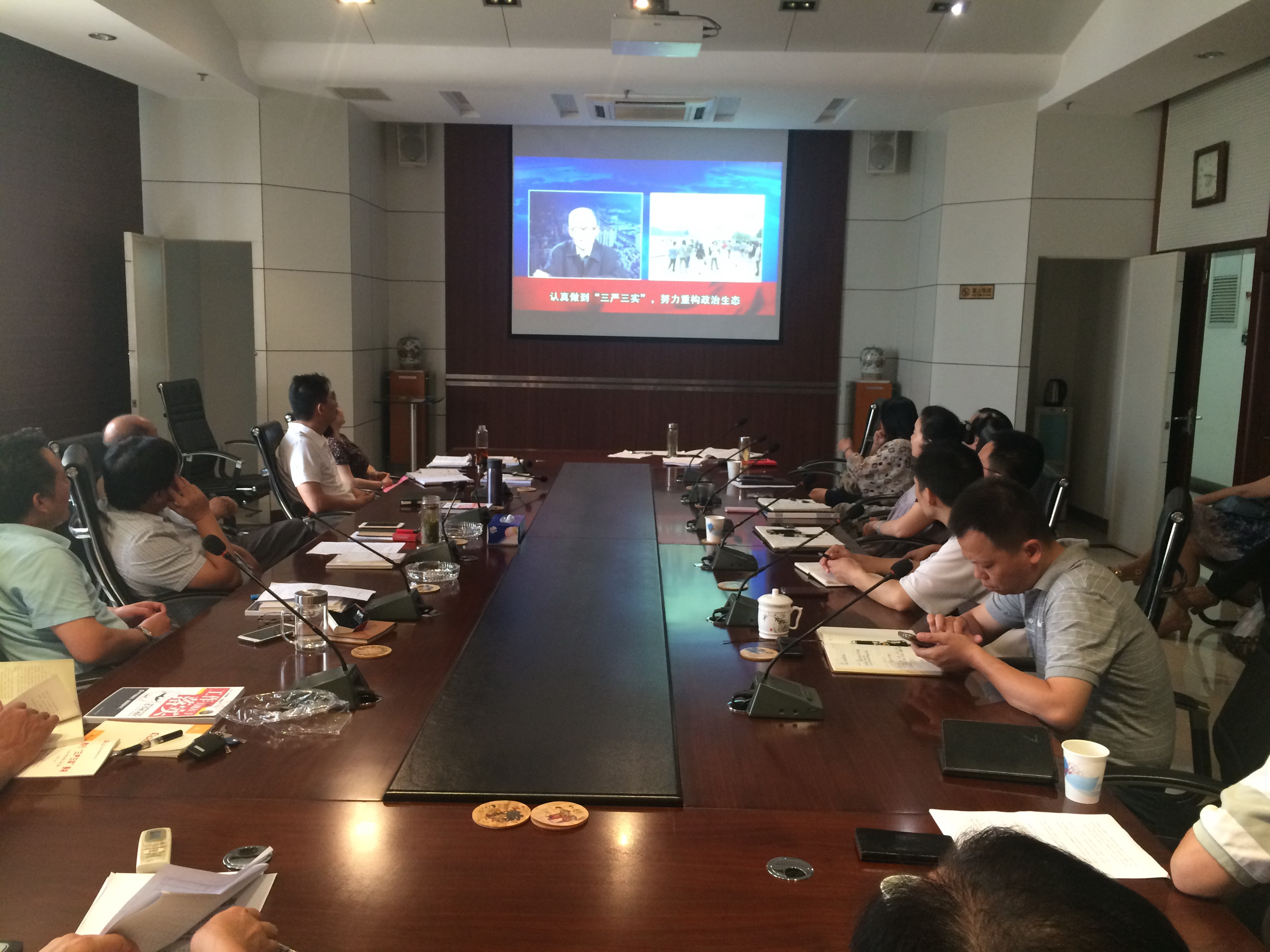 会议首先集中观看了中央党校机关党委原副书记薛鑫良教授做的《认真做到“三严三实”,努力重构政治生态》视频讲座。讲座从“三严三实”的内涵和要求、核心和关键、现实针对性和指导意义、与重构政治生态的关系等四方面作了精辟讲解,内容丰富、事例典型,分析透彻、发人深省,对于准确把握“三严三实”的精神实质和内涵具有极强的指导作用。