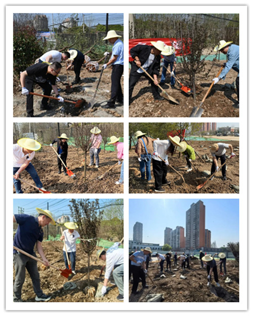 在项目绿化施工现场,经过专业人员的简单培训,40余名干部职工撸起袖子,热情高涨地参与现场苗木种植。大家三四个人一组,分工协作,有的挖坑、有的扶苗、有的培土,每个环节衔接紧凑、繁忙而有序。经过一上午的辛苦劳作,一排排新栽的红叶李、石楠树,为原本空旷的土地增添了勃勃生机。