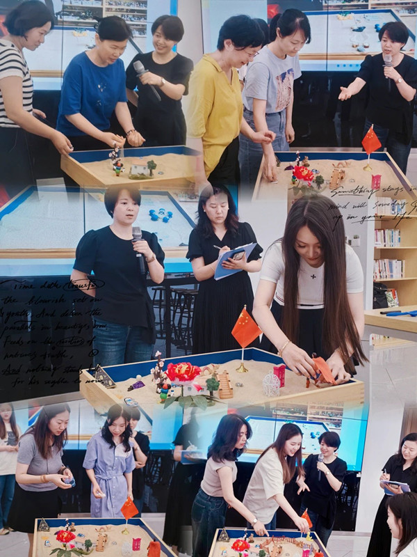 在雷老师的指导下,每名女职工自由挑选沙具,逐个摆放到沙盘中心仪的位置,共同构建了一个童话般的世界。在女职工们共同创作沙盘的过程中,大家相互协作、相互理解,并与现实生活结合,深入开展交流互动,使大家更直接、更真实地了解彼此,促进人际关系发展,获得心灵成长。