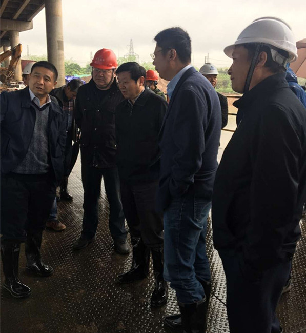 4月10日上午,市人民政府副市长汪祥旺、副秘书长彭涛一行,来到我公司负责代建的三环线南段改造工程李纸立交帮宽桥工程现场,调研项目建设情况。市城投集团公司副总经理林驰、盛华陪同调研。