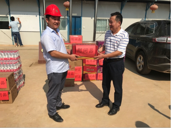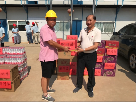 公司领导每到一处,都对工作人员表示慰问,把物资送到他们手上,对他们不畏高温、坚守岗位的辛勤工作表示感谢,并叮嘱他们一定要把安全放在第一位,在安全的情况下,保质保量完成工期节点目标。同时要求合理安排工作时间,注重劳逸结合,并进一步做好高温防护工作,积极应对高温天气给工作带来的困难与不便,确保各项施工工作有条不紊地进行。