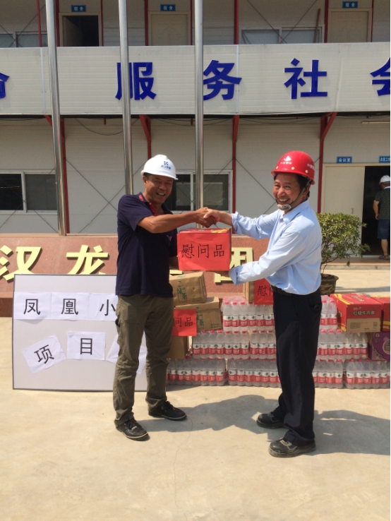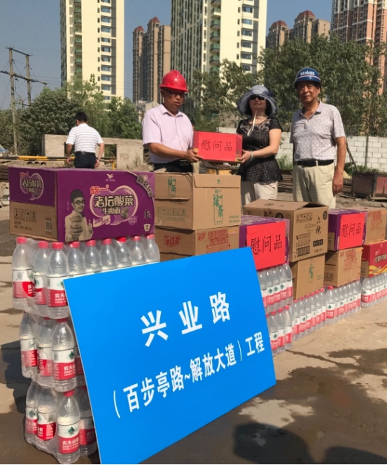 进入7月以来,持续高温,热气袭人,但公司广大员工,尤其是施工现场人员,不畏困难,战高温、斗酷暑,依旧坚守岗位,为实现公司全年目标而奋力拼搏。7月26日、27日,集团公司领导分别来到兴业路、解放大道下延线、李纸路、丁字桥南路、丁字桥北路、珞狮南路、建安街、杨泗港四新段、凤凰小城等项目现场,看望慰问奋战在高温一线的工作人员,为他们送去防暑降温物资。