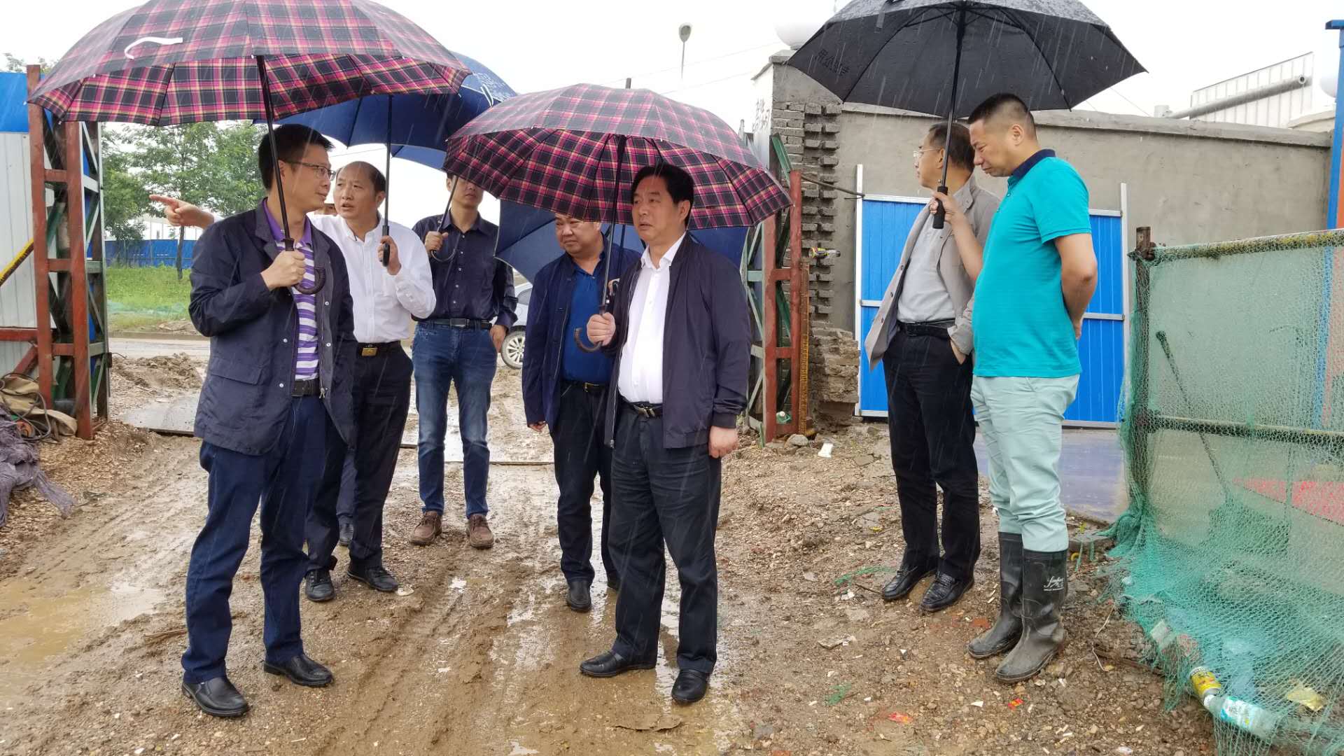 在黄家湖现场,金董事长一行听取了桥建集团董事长朱明刚对黄家湖区域各项目现场推进情况的汇报,冒雨重点查看了黄家湖大道与三环线节点区域综合整治工程土方处理的实际情况,并针对项目现场施工的实际情况和存在问题,提出了具体工作要求。金董事长指出,要进一步核实清楚土方量,加强同相关市、区职能部门的沟通协调力度,处理好项目建设中存在的土方、征拆等问题,保证项目按节点目标推进。