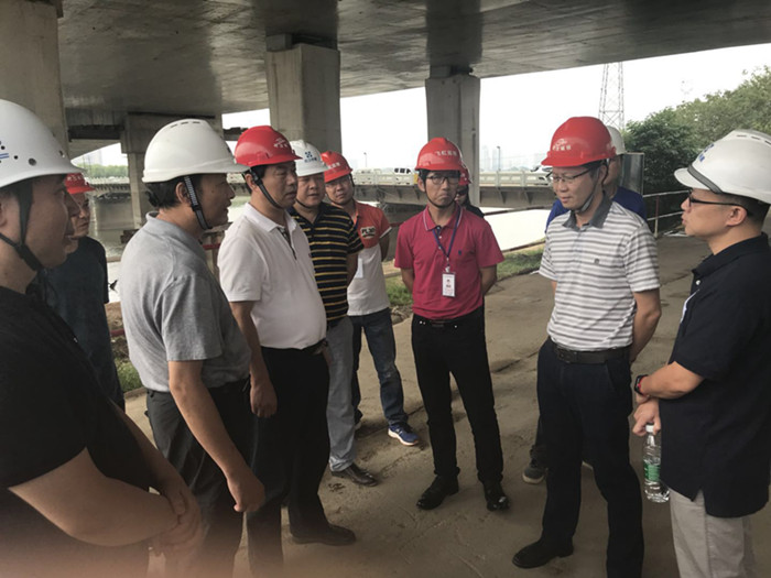 市城投集团公司副总经理盛华,项目部相关负责同志,桥建集团董事长朱明刚,总工程师邓文辉等陪同调研。