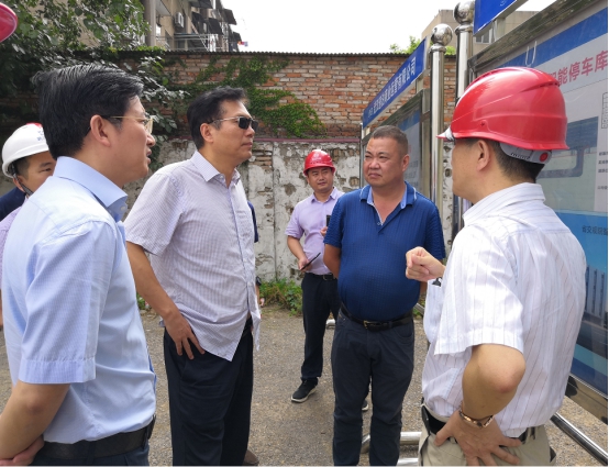 在省交规院智能停车库和郭茨口智能停车库项目现场,李兵总经理详细听取了项目负责人关于两个停车场项目建设的最新进展、规划情况。