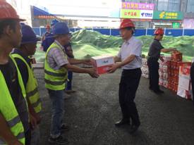 2018年7月,武汉进入入夏以来持续炎热少雨的高温天气。7月26日下午,市国资委副主任曾华平、改革处处长邹时艳在市城投集团公司副总经理吏林山的陪同下,来到汉江大道宝硚路项目一线,走访慰问战斗在一线的基层工作者,并送上关心和清凉。