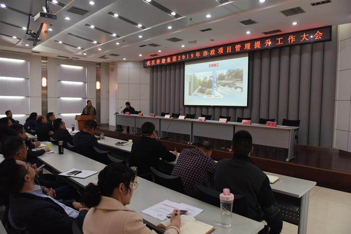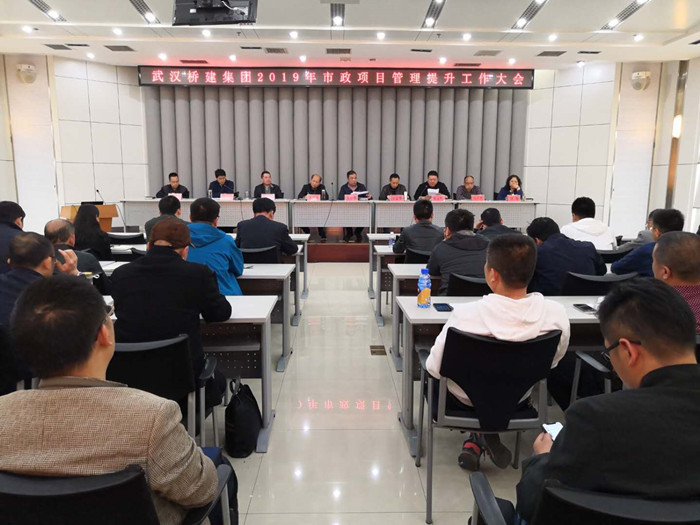 为进一步提升市政项目管理水平,打造市政精品工程,3月29日下午,桥建集团组织所有市政项目参建单位召开2019年市政项目管理提升工作大会。桥建集团领导班子、公司市政相关部门、基建公司全员、全体市政项目施工单位项目经理、监理单位总监参加了会议。公司副总经理程金华主持会议。