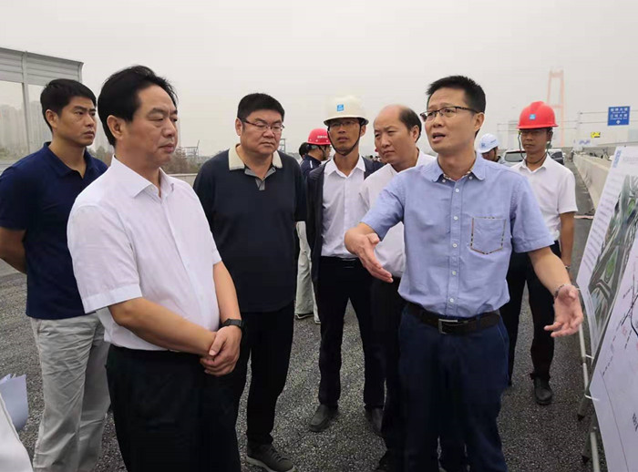 市城投集团公司项目管理部部长陈勇,桥建集团董事长朱明刚,副总经理程金华等陪同检查。