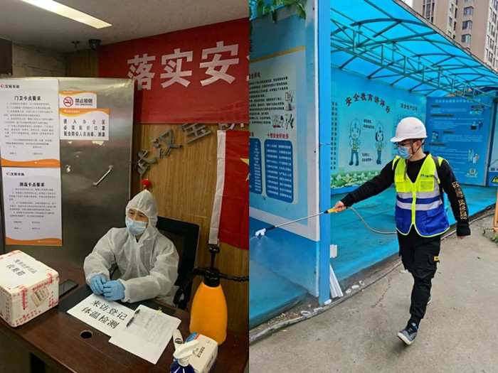 各办公区域按时消杀,出入口安排专人测量体温、查验健康码,公共区域摆设消毒用品,返岗前安排员工检测核酸和CT,返岗后按需配发防疫用品。工程项目建设现场实行实名登记、封闭式管理。