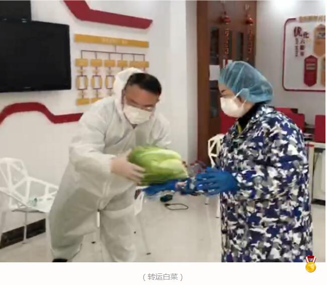 今天的任务一早就来了,3名同志到社区不一会儿,两吨白菜就运到了居委会门口。很快地,3名同志和社区工作人员一道,靠双手转运完成了2吨白菜。
