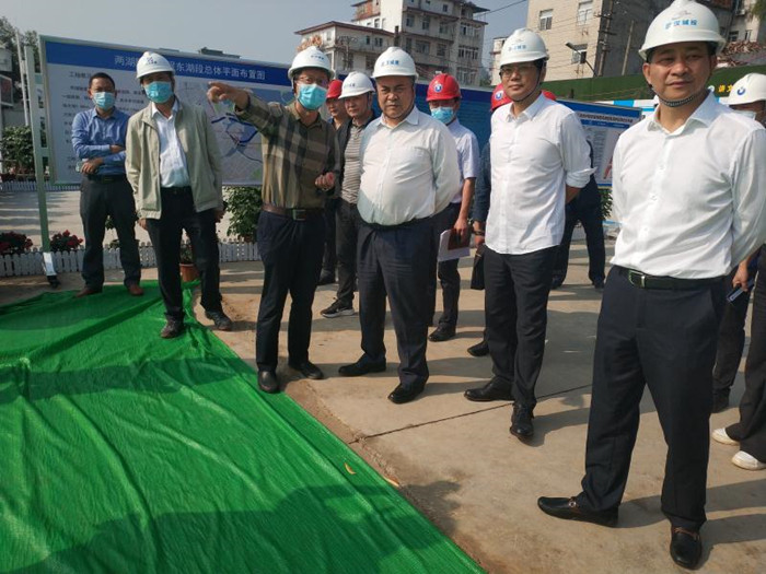 9月30日上午,市政府副市长张文彤到两湖隧道东湖段工程施工现场,对项目施工安全生产工作进行专项检查。市城投集团公司党委书记、董事长李兵,总经理余新民参加检查。
