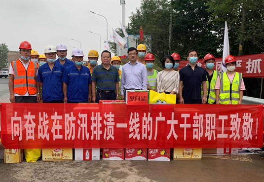 7月16日下午,市城投集团公司总经理助理李卫来到桥建集团负责的三环线小河桥防汛点,看望慰问坚守在防汛一线的桥建集团及誉城千里、中铁大桥局七公司、青山市政等单位工作人员,为他们送去食物、饮料、药品等慰问物资,并要求大家切实做好巡察值守,备齐应急物资,完善应急预案,确保点位安全。叮嘱大家站好岗、放好哨、守好堤,同时也一定要做好自身安全防护。