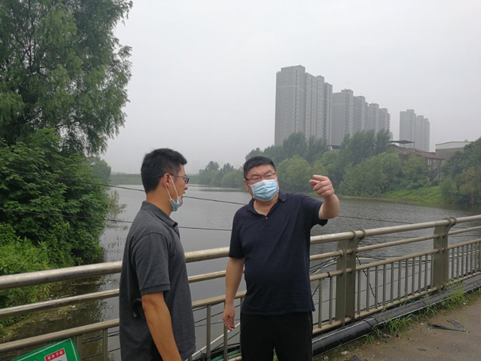 7月11日上午,市城投集团公司副总经理林驰、盛华带队检查三环线小河桥防汛应急工作情况。