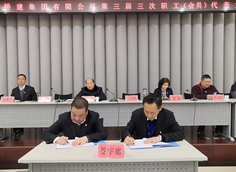 2月25日上午,集团公司第三届职工(会员)代表大会三次会议在公司1503会议室召开。大会应到代表42人,实到代表37人,符合法定开会人数。公司党委书记、董事长朱明刚出席大会并作重要讲话,总经理、党委副书记艾诗明代表公司签订有关协议。