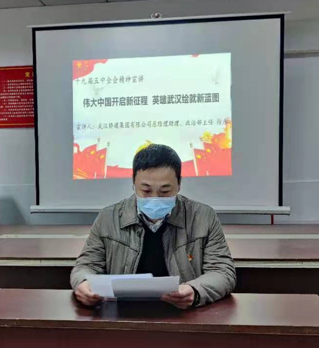 为认真学习贯彻党的十九届五中全会精神,进一步发挥基层党组织战斗堡垒作用,落实市委组织部、市城投集团党委关于机关企事业单位党员干部下沉的相关工作要求,2月4日下午,公司总经理助理、宣讲队副队长徐彦带领支部党员代表赴武昌八铺街社区,与社区共同开展共建共联活动,宣讲十九届五中全会精神。