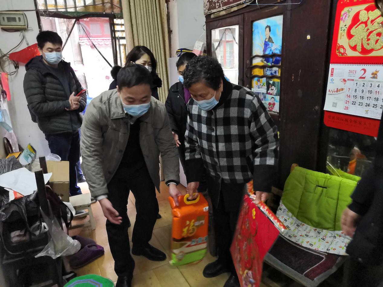 (向社区困难群众送去生活物资)