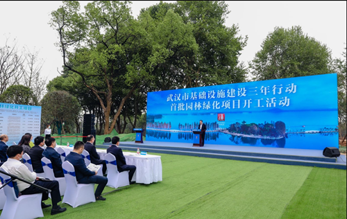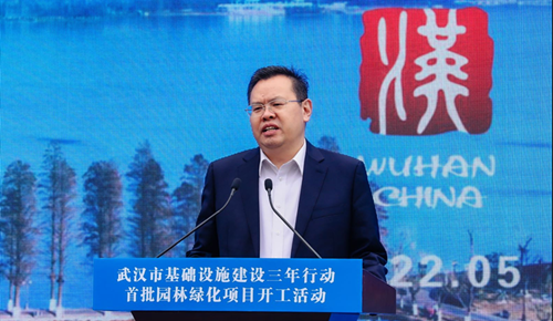 2022年5月18日上午,武汉市基础设施建设三年行动首批园林绿化项目开工活动在东湖风景区落雁景区改造项目现场举行,市委副书记、市人民政府市长程用文宣布开工并讲话。