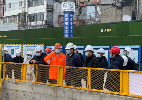 在项目建设现场,李兵董事长一行仔细察看了两湖隧道东湖段风光村点位盾构始发井、钢筋加工场、项目大临设施、监控指挥中心及项目展厅,详细了解项目进展情况、岩溶处理及大盾构施工准备情况,并就高质量、高标准完成两湖隧道东湖段项目建设任务,提出具体要求。
