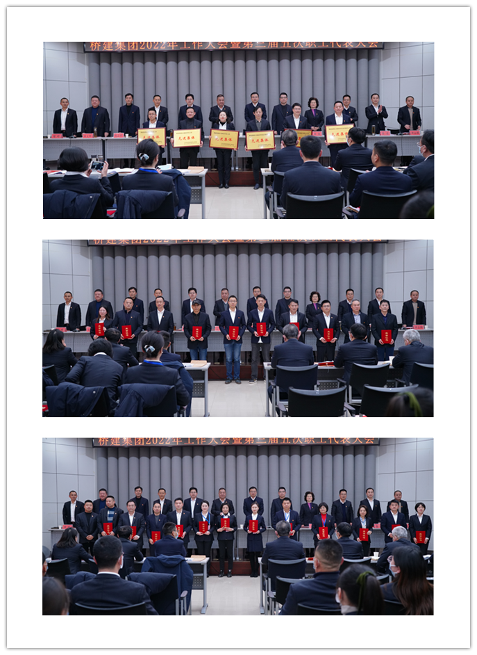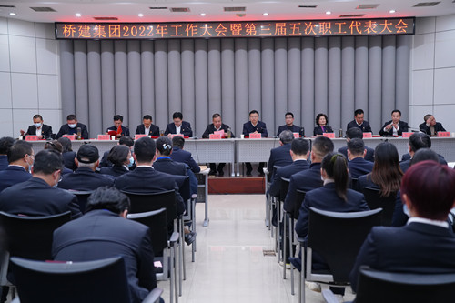 2022年1月21日下午,桥建集团组织召开2022年工作大会暨第三届五次职工代表大会,全面总结公司2021年各项工作,分析当前面临的形势和任务,安排部署2022年重点工作。集团公司领导、本部中层干部、所属单位领导班子成员和年度先进集体和先进个人代表、集团公司职工代表参加了会议。公司党委委员、监事长葛应林主持会议。