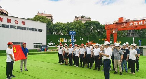 党员们走进项目现场,参观了省博工作井、“功勋号”超大直径盾构机,两湖隧道联合支部副书记孙和顺同志详细介绍了盾构机的工作原理及工程建设中存在的重难点问题。在工作井顶板上,德利实业党支部书记张炜同志带领党员们面向党旗,重温入党誓词。