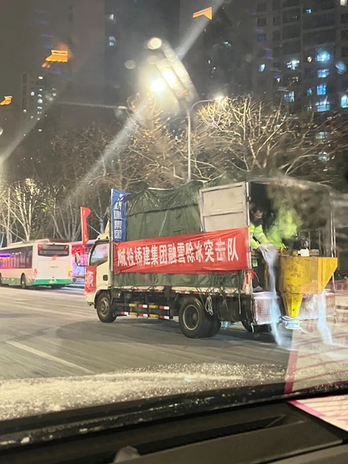 自2月20日起,武汉先后出现了雨、雨夹雪、冻雨、冰粒,新一轮低温暴雪天气来势汹汹,再一次给市民出行带来了极大不便。为确保道路交通安全和人民群众正常生产生活秩序,桥建集团公司高度重视,积极响应市城投集团公司部署,提前谋划,认真研判分析极端天气安全风险,在总结应对节前雨雪冰冻天气经验的基础上,针对三环线北段(长丰桥—天兴洲大桥)28公里主线道路、匝道,进一步优化既有应急保障方案,发扬连续作战精神,迅速吹响“集结号”,打好应对主动仗,以“速动”应对“速冻”,快速集结各方人员以及融雪除冰车辆、机械设备,补充融雪剂等,同冰雪进行不分昼夜的鏖战。同时,公司还积极承担国企社会责任,充分发挥党员干部先锋模范作用,积极组织公司广大党员干部职工对单位及周边道路、特别是人行道,清除道路积雪、断枝和其他障碍物,以实际行动最大限度减少和降低冰冻天气的影响,保障市民出行安全,以饱满的激情坚决打赢新一轮寒潮大风及低温雨雪冰冻天气防范应对这场硬仗。