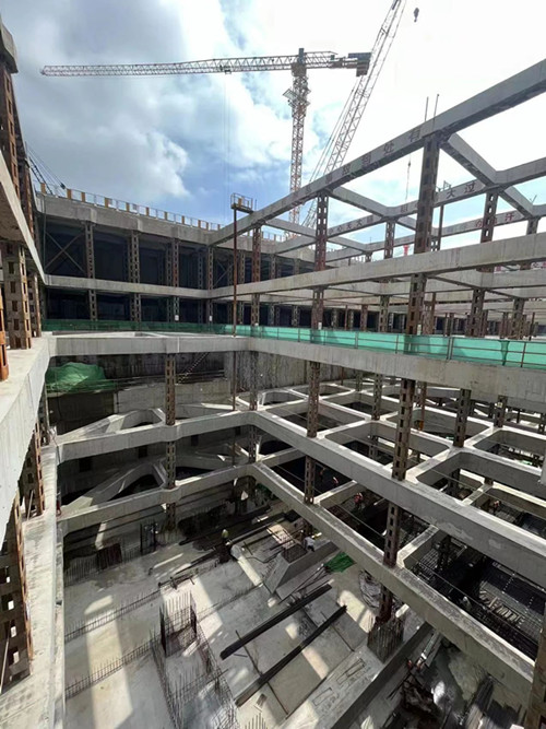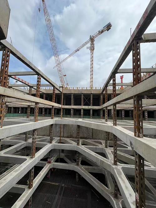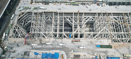 二七路过江通道车站段位于汉口滨江商务区核心范围内,为二七路过江通道与地铁新港西延线合建段,其主线起于解放大道东侧,止于沿江大道盾构工作井,全长550米,包括车站段、明挖区间段、盾构工作井段等。车站段主体结构采用明挖顺作法施工,将主体结构分成底板、侧墙、中板、顶板等部位,逐次有序开展施工。为确保基坑安全,保证施工质量,项目结构底板分为15仓(其中车站段7仓,区间段及工作井8仓),采用跳仓施工,每仓混凝土连续浇筑时间控制在36个小时以内,有效确保了工程质量。
