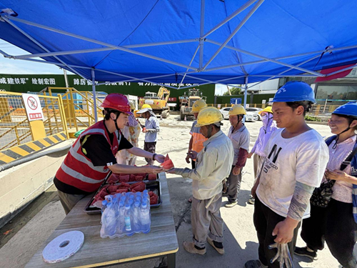 “高温天气对现场工作人员来说是种考验,要在保障他们人身安全的前提下抢进度。”二七过江通道工程现场业主代表张飞说,目前已将施工人员作业时间调整为“早出晚归”模式,通过“干两头、歇中间”错时施工的方式避开正午高温时间段,项目现场备有西瓜和凉茶等清凉解暑饮品,还备齐了藿香正气液、清凉油等防暑降温药品,生活区配备了空调,在缓解高温作业压力的同时,也为项目正常推进创造了条件。