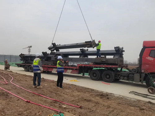 在专业操作人员的精准操控下,钢柱平稳升起,准确就位。