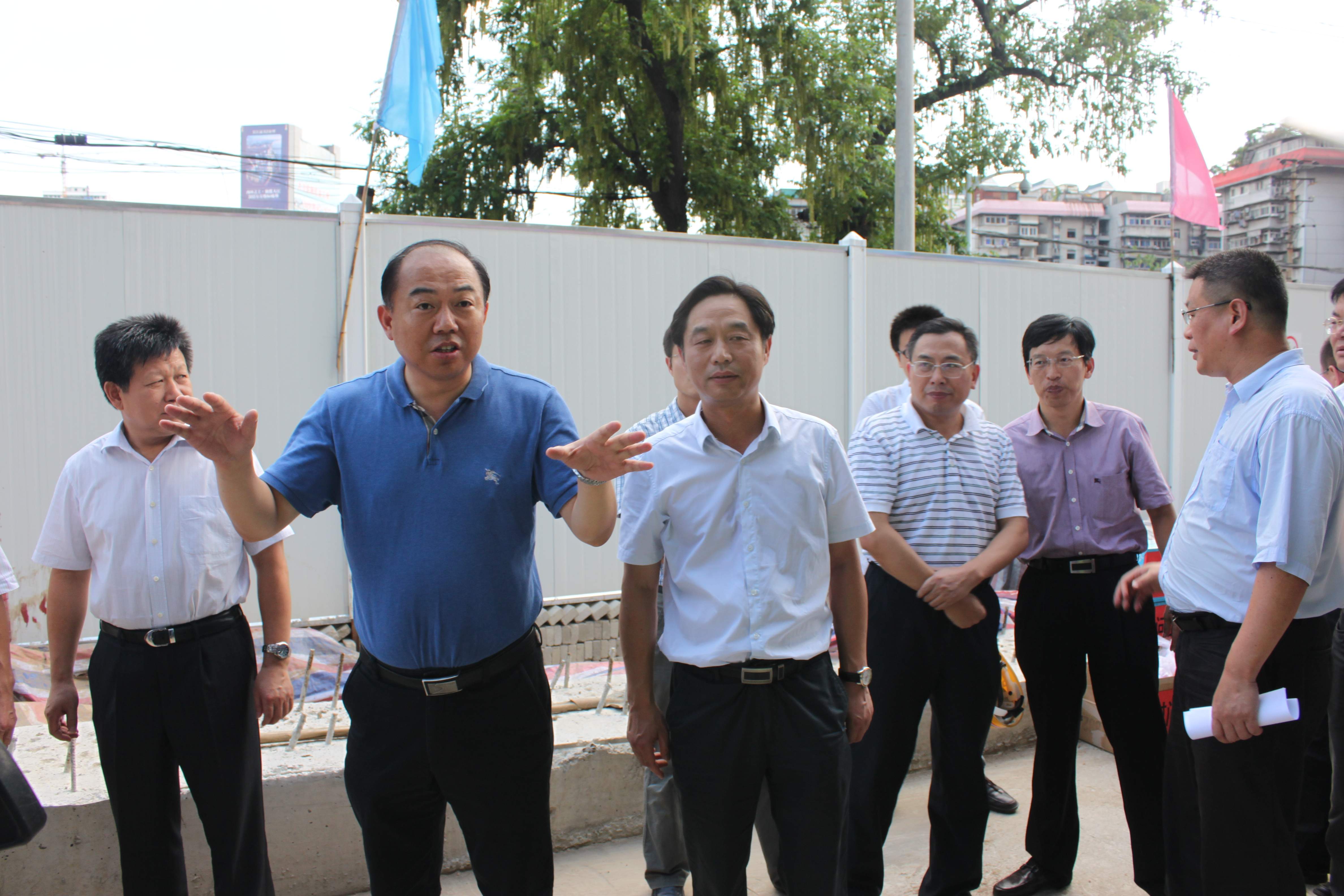 胡立山副市长在城投金国发总经理、桥建鲁有月董事长的陪同下检查工地