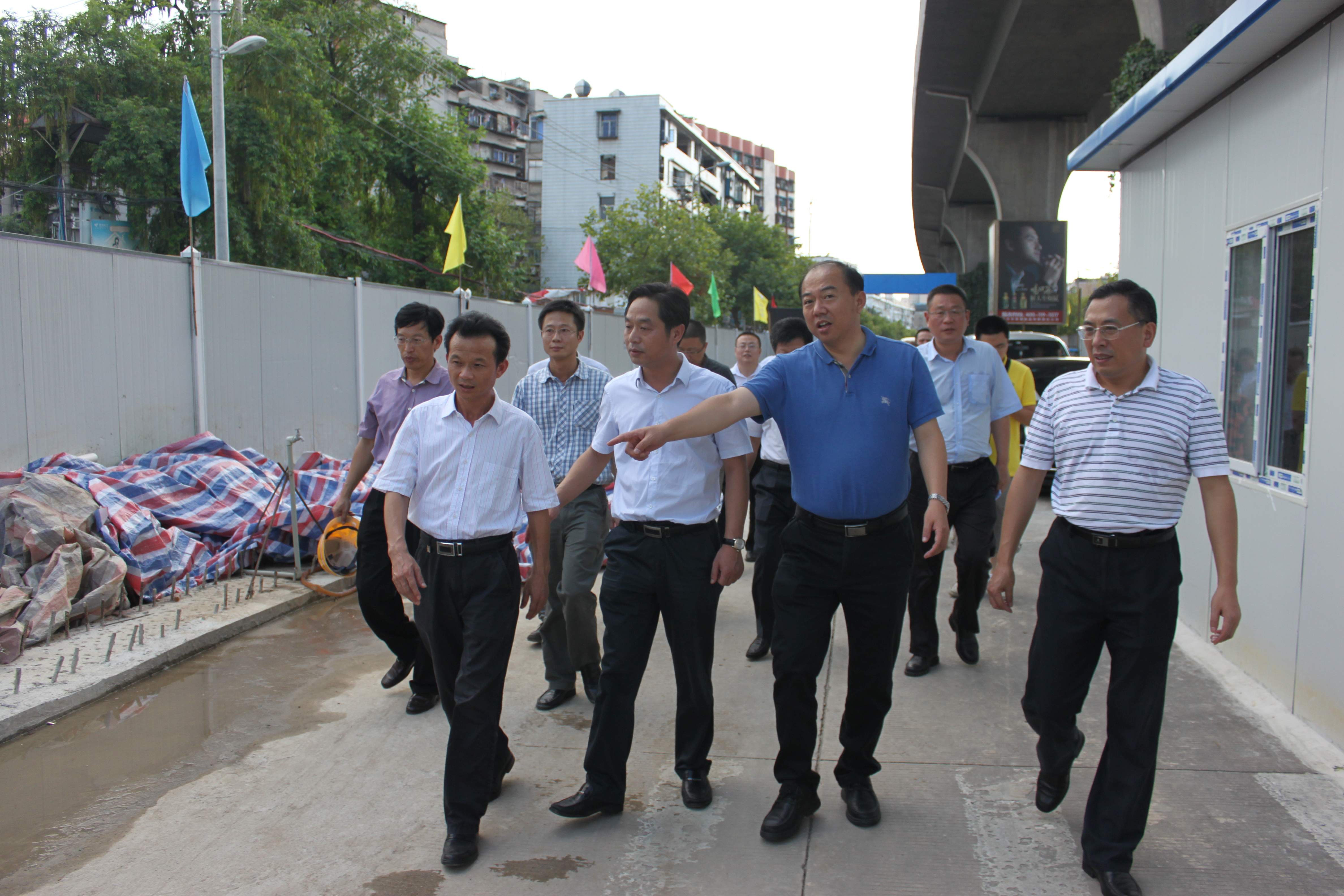 7月25日下午,胡立山副市长,王继连副秘书长及市重点办、市城建委、市城管局、市交管局等市直部门相关领导,前往武胜路立交施工现场慰问检查。