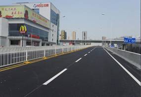 该工程由市城投集团公司负责建设,全长554.25米,标准桥宽17米,采用钻孔灌注桩基础,矩形(工字型)承台,双柱式花瓶型桥墩。 实现了王家湾十字路口东西方向(十里铺至黄金口)的立式交通。开放交通后将实现汉阳大道路段无红灯快速通过王家湾十字路口,将极大提高汉阳大道车辆通行能力,有效改善王家湾区域的交通现状。