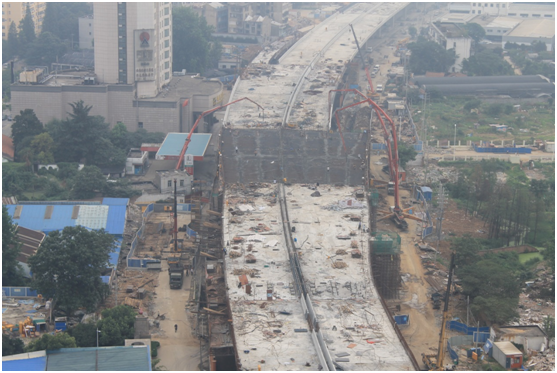 为尽量减少施工对周边百姓出行的影响,根据道路交通车流量情况,采取不断交通的施工模式,增设施工现场警示标志,落实施工人员安全防护措施,严格遵守文明施工标准,确保周边行人、车辆正常通行。在此基础上,根据历年气候变化和降雨情况,合理制定切实可行的雨季施工计划,疏通排水设施,根据天气及时调整施工部署,、使施工规范有序进行,确保雄楚大街高架(尤李立交-楚平路段)2015年8月30日按时通车。