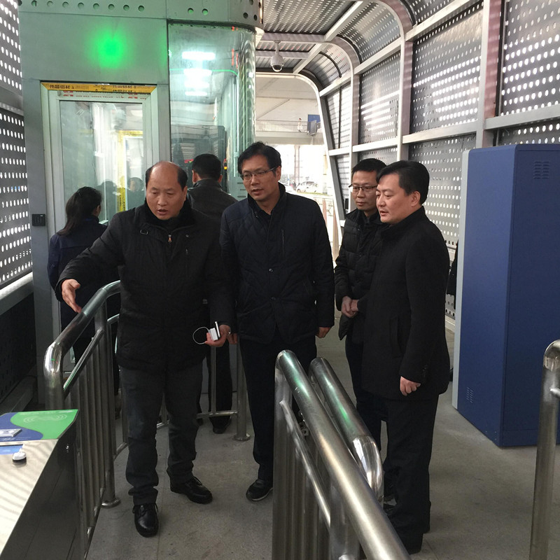12月30日下午,市城投集团公司总经理李兵、副总经理盛华带队来到我公司负责代建的雄楚大街BRT项目现场,调研BRT试运行情况。