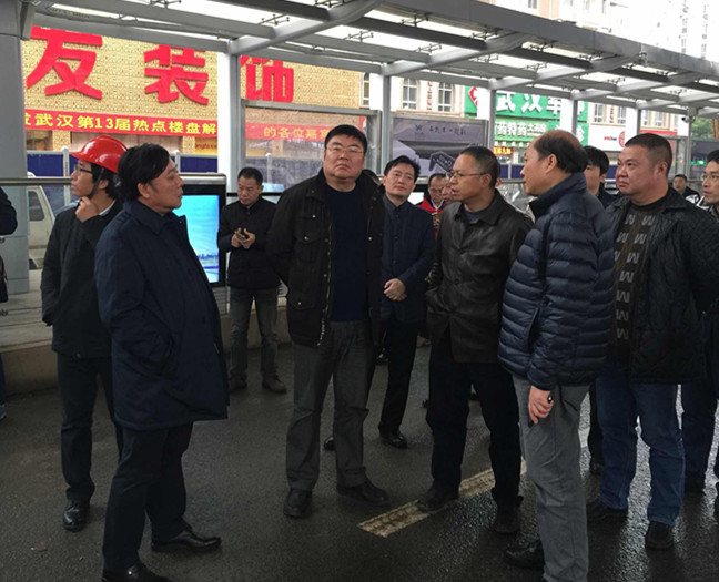 林总一行检查了武昌火车站东广场BRT临时调度中心及沿线各个BRT公交站台,详细询问了项目的施工进度和BRT试运营情况,要求雄楚大街BRT各参建单位全力确保12月28日BRT通车的节点目标。