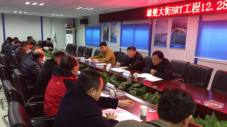 实地检查后,林总在雄楚大街项目部主持召开雄楚大街BRT12·28通车目标调度会。会上,林总对雄楚大街BRT工程建设提出了五点要求:一是要将安全生产工作作为首要任务来抓,确保施工中的用电和高空作业安全,天桥吊装要严格按照规范进行操作,项目现场的专职安全员要切实履行职责,确保不发生任何安全责任事故;二是要抓好工程质量,保障BRT系统的稳定性,做好突发事件应急预案,对于各种突发事件要有预防措施;三是做好施工现场的精细化管理。施工现场要做好噪音、扬尘的管控,园林绿化要做到美观、大气,不能出现裸土堆放,精细化管理要到边到角;四是要做好协调配合工作。BRT各参建单位要相互配合,及时与公交集团、 交管局、城管局等职能部门沟通对接,做好BRT运行的各项准备工作;五是要在确保安全的前提下,全力保障12月28日的通车目标。
