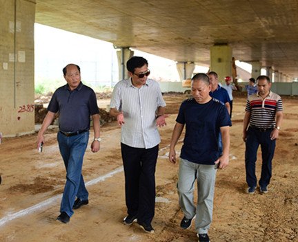 8月23日上午,市城投集团公司总经理李兵来到我公司负责代建的滨江大道和杨泗港快速通道四新段工程现场,实地检查工程建设情况。