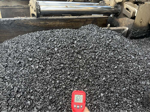建设大道延长线项目正在紧锣密鼓的进行桥面沥青摊铺工作,为了保证施工节点,一线施工管理人员和作业工人头顶烈日,脚踏热土,一直工作到深夜。沥青的摊铺的高温,加上烈日的灼烧,桥面上烫得可以把生鸡蛋煎熟。现场压路机来来回回对沥青路路面进行沥青摊铺作业,质量管控人员踩在滚烫的沥青上进行质量控制,测量沥青温度、厚度、平整度等作业。项目业主代表周丰介绍说:“天气太热了,现场测量沥青温度高达162.2摄氏度,质量管控人员的的手都烫出水泡了也没有一句怨言。为了保障工期节点,确保每一道工序的质量,大家全身心投入到工作中去了,早已忘却了周围的高温环境。”