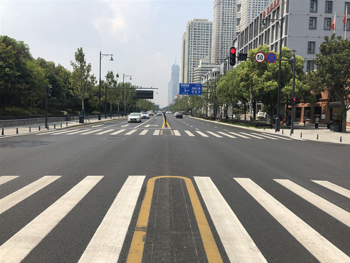 沿江大道经过全新铣刨、沥青摊铺后,路面更加平整,交通标线施划清晰,行车视野开阔。整治提升后的沿江大道人行道,地砖铺设一新。以往可见的各种箱柜都不见了,管线全部埋入地下,加铺了隐形井盖,井盖与地砖铺设在一起,走上去的感觉与正常路面无异。以往沿江大道每个路口人行道和路面都有一定高差,现在路口站石与人行路面连接处都尽量削平,步行一路平坦无障碍。沿江大道两侧全线每隔30米左右,就增设1条坐凳,此外每个公交站台都设置了长约30米的休闲长椅,以便观光行人和候车的市民休憩。在这条改造后的景观大道上,市民和游人有舒适、安全的慢行体验。