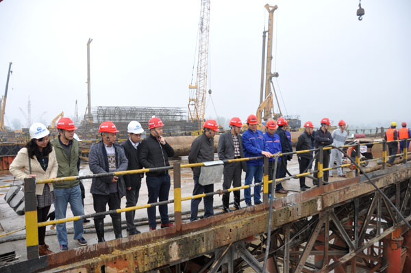 年终将至,公司号召全体员工,大战40天,为全面完成公司各项目标任务而努力。为此,11月18日,公司工会组织开展了“参观工地鼓干劲”----走进杨泗港大桥施工现场参观学习活动。道桥公司领导郭文增、高翔、何志明、陈涛、杨志祥和中铁大桥局领导韩胜利等50余人参加了此次活动。