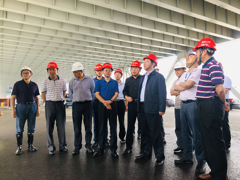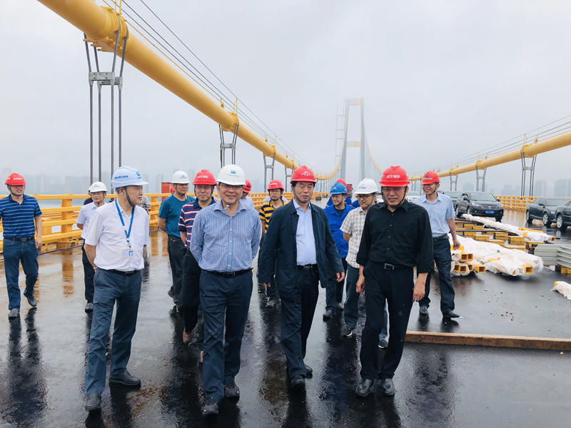 6月18日上午,集团董事长金国发检查了杨泗港长江大桥工程。集团项目部部长陈勇,道桥公司董事长鲁有月、总经理郭文增,中铁大桥局党委副书记黄支金、大桥院党委书记田道明,以及BT、武船、大桥监理、飞虹、铁四院监理等单位负责人参加了活动。