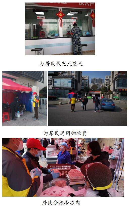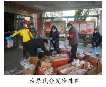 黄家湖社区:郭文增和陈斌、闵津、周敏、崔小明、郑元6人,今日对东澜岸社区商业街415户商户进行了巡查;为小区居民购买并分发团购物资20份;为社区10户居民代充天然气;为社区居民装卸分发冷冻肉500份。