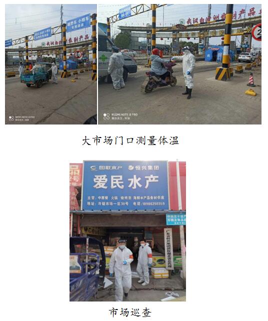 渔业社区:杨志祥和李航、龚成、曾璇、罗勋、夏泽恩、严正勇、胡冠桓、张雷、邓泽华、张宝宏,同城投张文麦、任晖、阮伟一起组成14人小分队,今日继续巡查大市场,冷链市场,配合社区监督冷链市场清除生活区、消防通道垃圾,确保环境卫生、消防安全,全天共计巡查17次;继续对大市场进口非机动车、行人进行体温测量,出入证检查,全天共检查600余人次,劝退无证人员30余人;值守期间发现一位滞留人员,及时将相关信息上报社区;夜间巡查大市场,提醒商户佩戴口罩,不要聚集一起吃饭、闲聊,工作至晚上9:00结束。